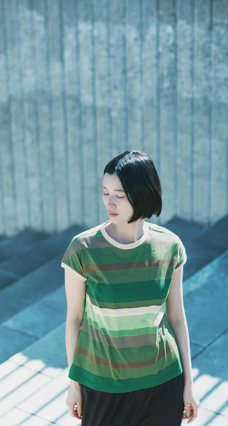 - tsuki.s ランダムストライプフレンチスリーブ(グリーン・F)