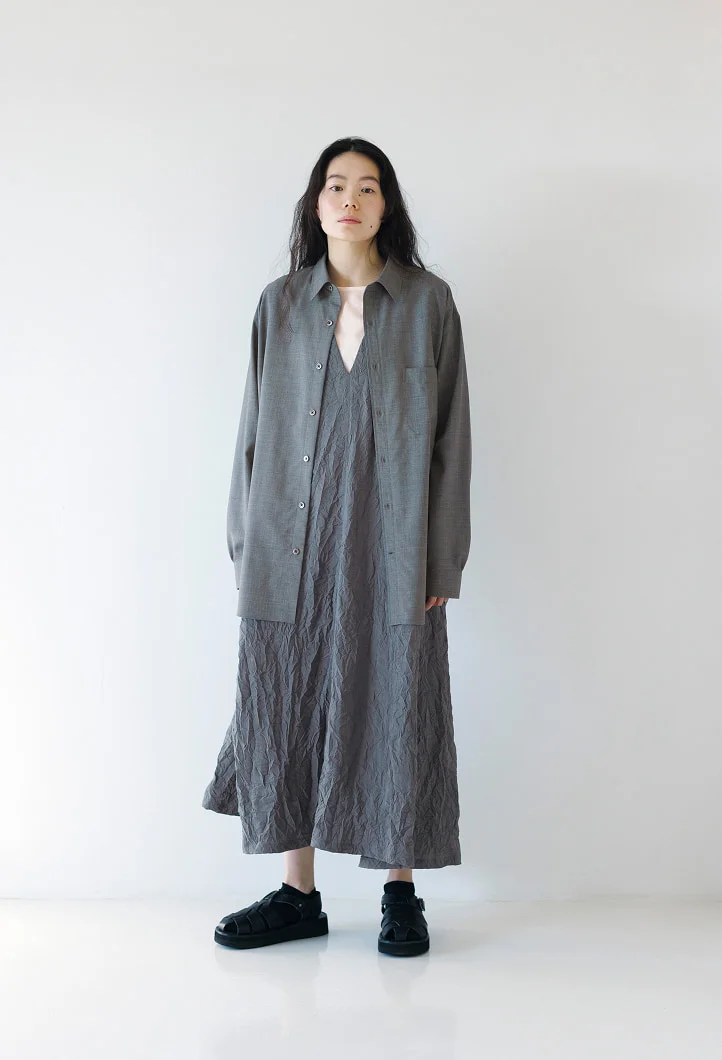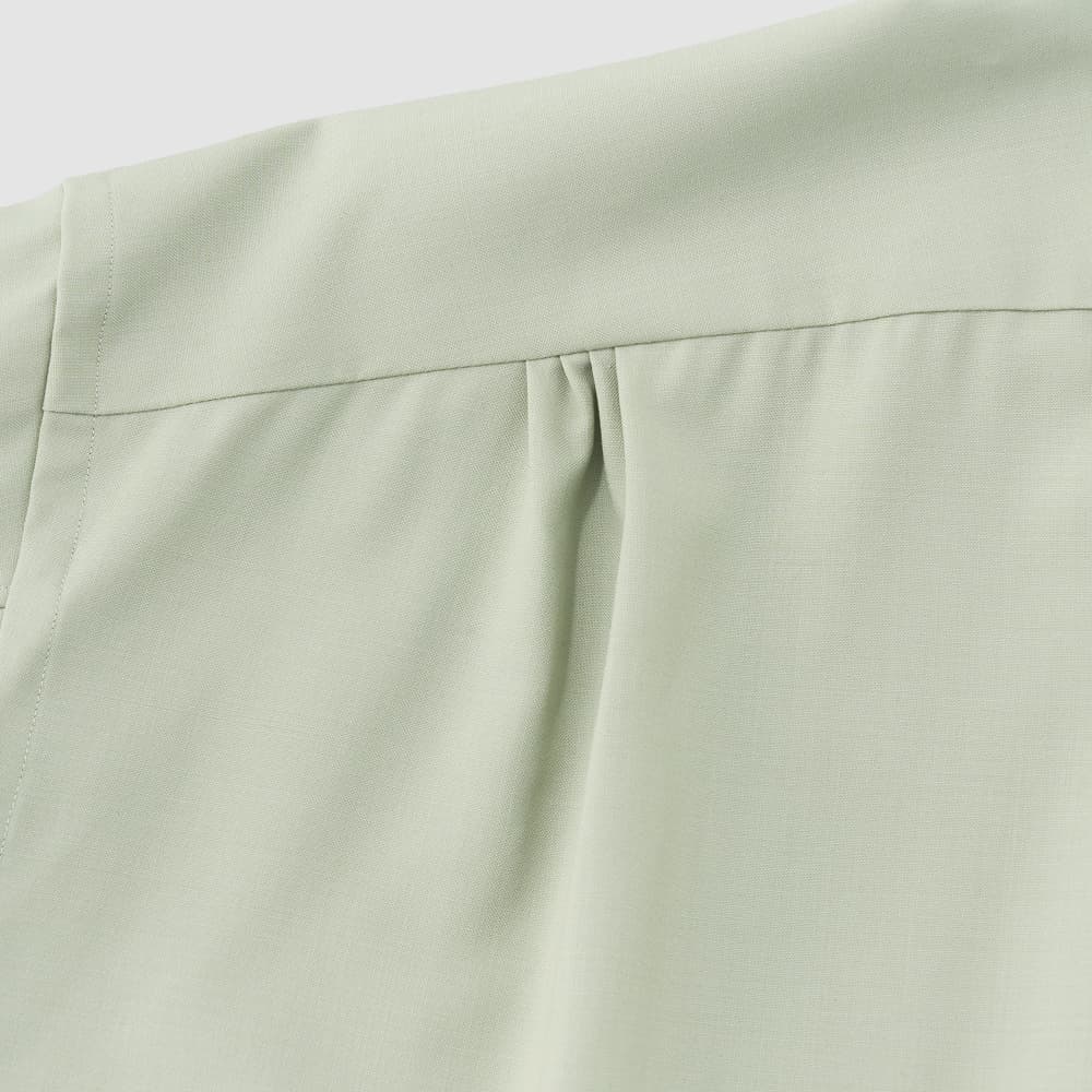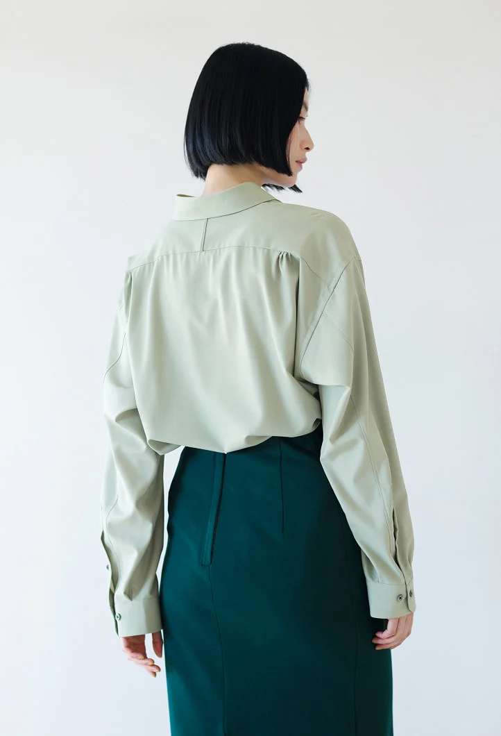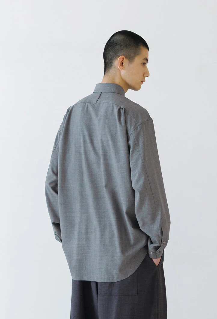 背面と袖口に、 遊び心のある細かなチビタックを入れています。 ギャザーのように甘くなりすぎず、 男性が着ても違和感のない、 控えめなアクセントに。