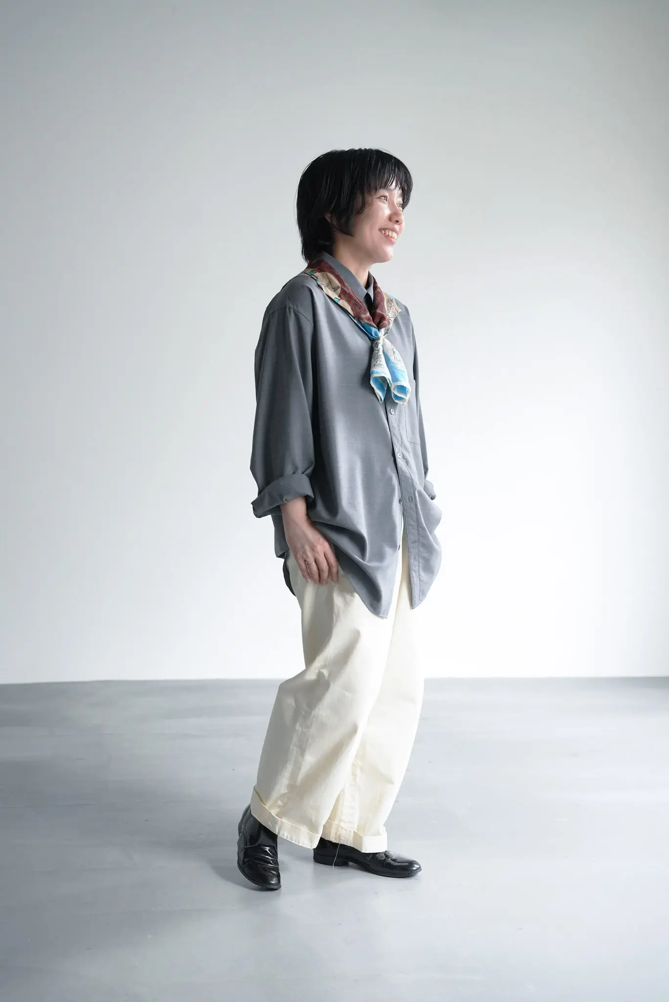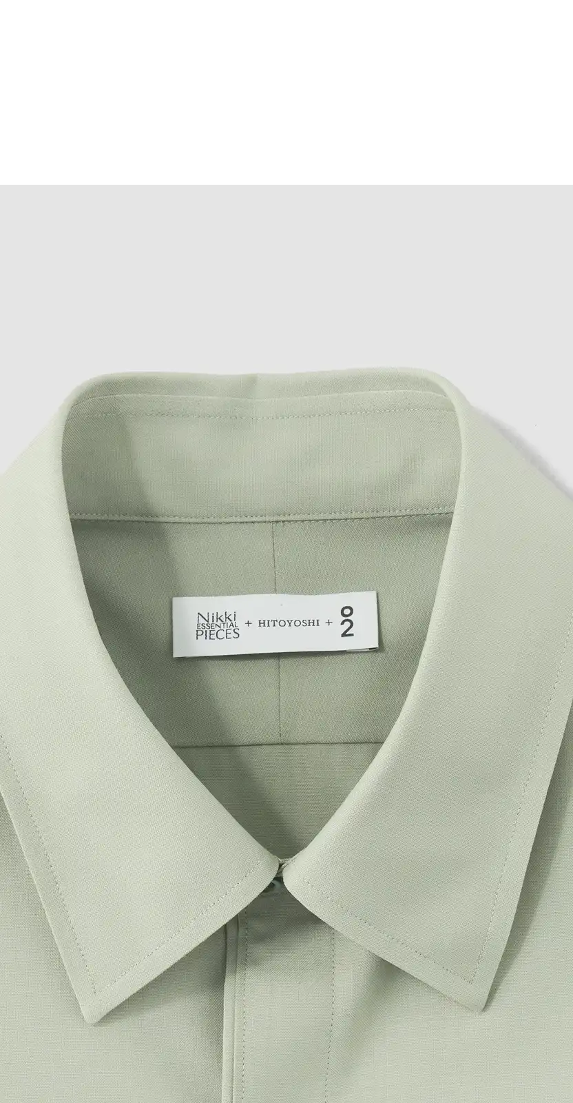 はじまりは、 洗練された日常着を手がける 「Nikki ESSENTIAL PIECES (ニッキ エッセンシャル ピーシーズ)」の 浅川智子さんに企画の相談をしたことから。 それならば、と、 上質なドレスシャツづくりで知られる 熊本のシャツメーカー「HITOYOSHI(ヒトヨシ)」と、 服の構造を熟知し、美しいシルエットを作り出す 高い技術力に定評のある パタンナーの髙井亮佑さんにもお声がけいただき、 上質な仕立てを得意とする三者がそろう、 ぜいたくな座組みが実現しました。