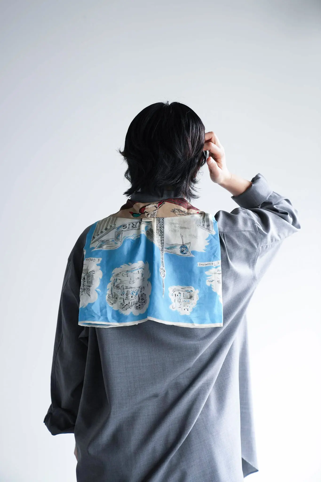 袖元は、「HITOYOSHI」が得意とする 「細三巻」で仕上げています。 袖の生地をそのまま延長して三つ折りにする縫い方で、 インポートのドレスシャツなどに見られる、 クラシカルなディテールです。 そのうつくしさは、まるでスカーフの縁のよう。