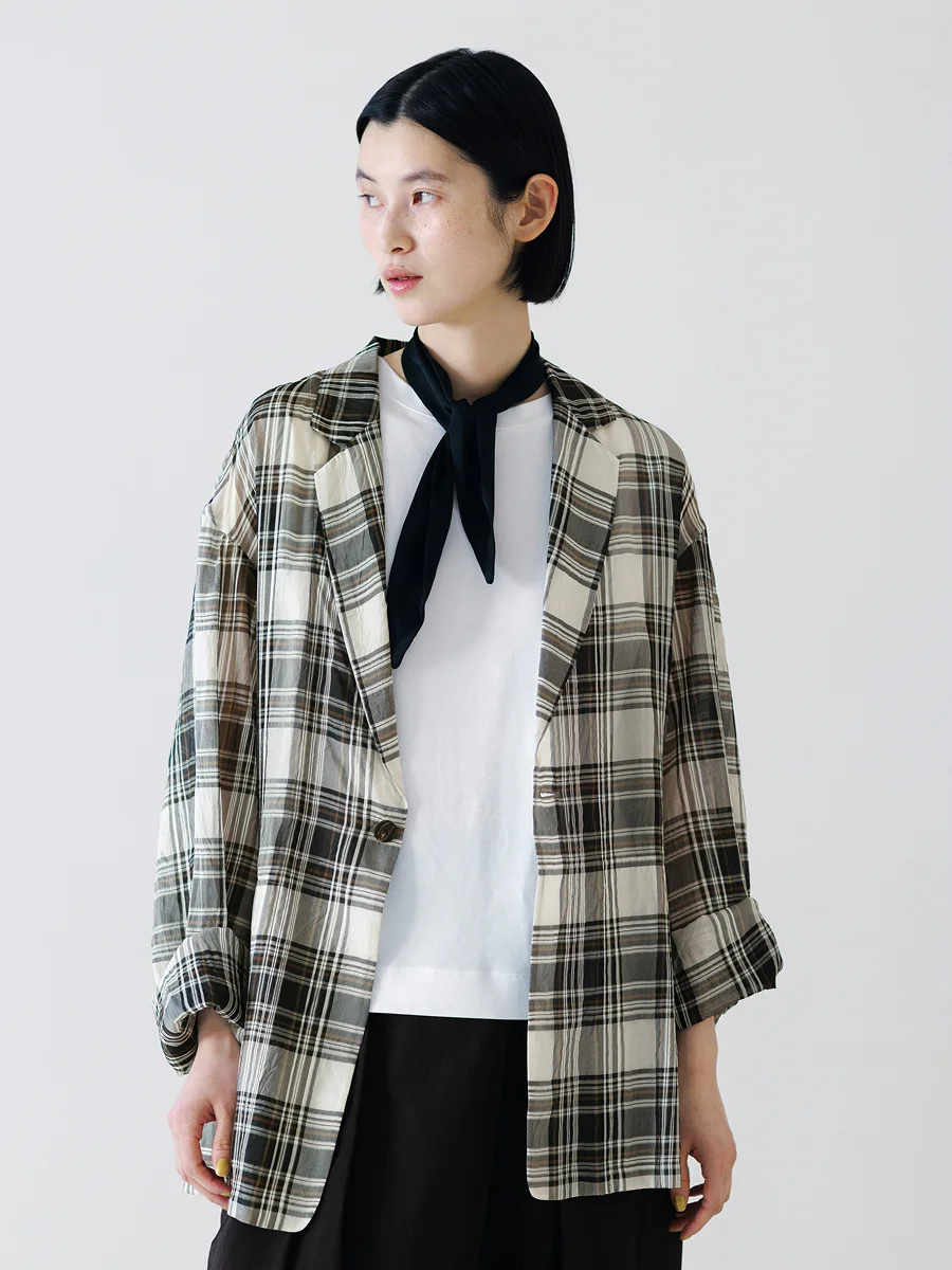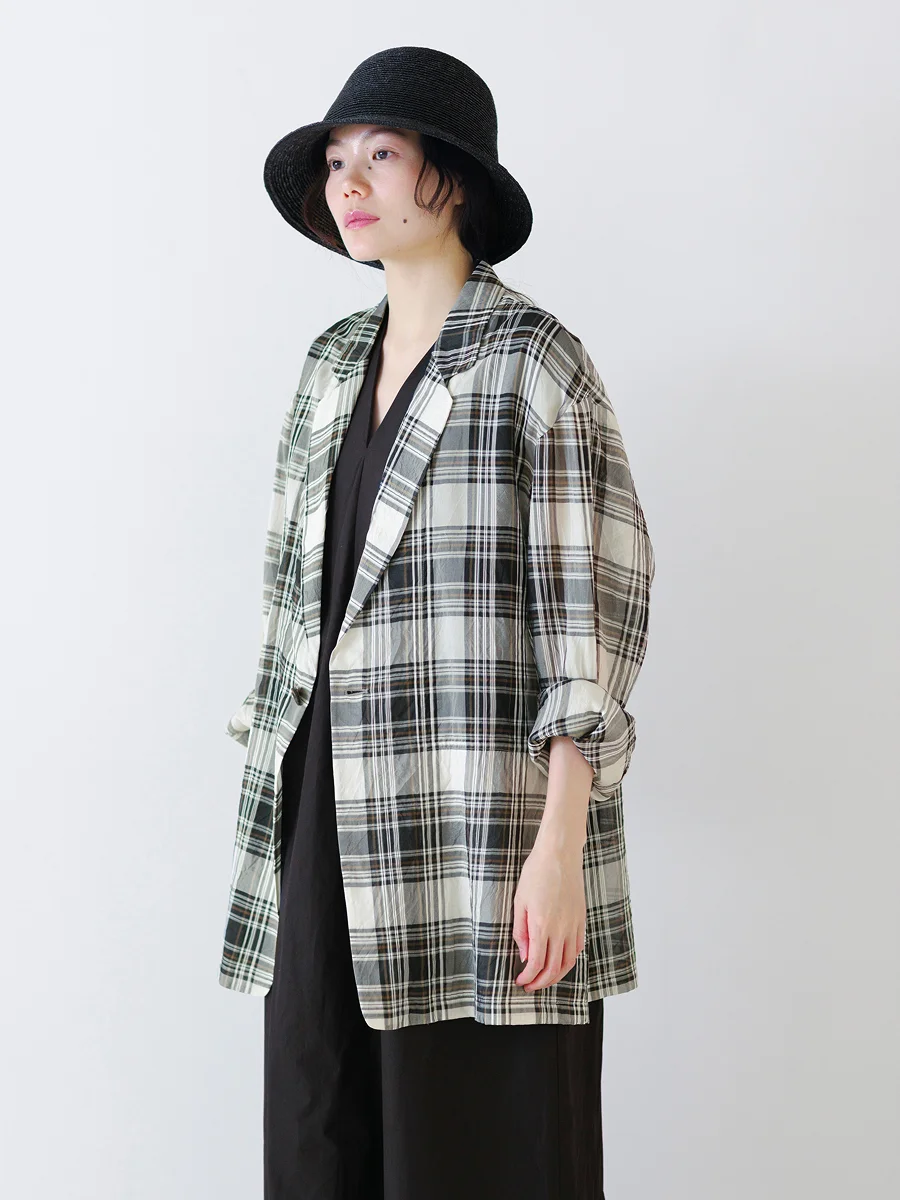 シンプルでありながらも、凛としたモダンさが漂い、 身に纏っているだけで上品にうつる。 ことしの春夏も、そんな洋服とともに過ごしたくて、 昨年につづき オリジナルアイテムをふたつセレクトさせてもらいました。 羽のように軽いチェック柄のサマージャケットと、 ビジネスシーンでも使えるアシンメトリーワンピース。 浅川さんご本人にうかがった デザインの工夫や素材のお話とともに、ご紹介します。