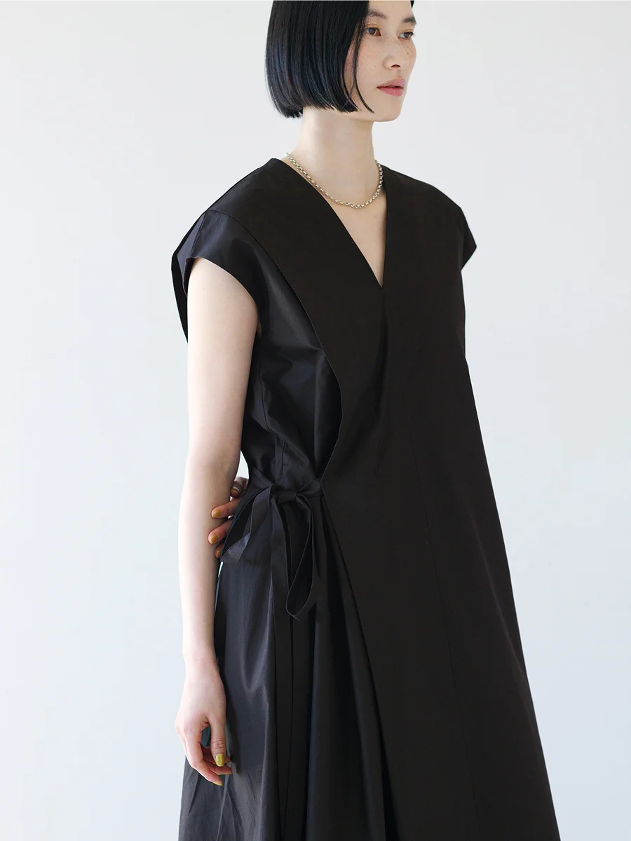 浅川 紐の結び方次第で、 いろんな着こなしをたのしめるようにしました。 片側でキュッと結ぶのがいちばんスタンダードですが、 ぐるりと腰を一周して、 ウエストを強めにしぼることもできます。