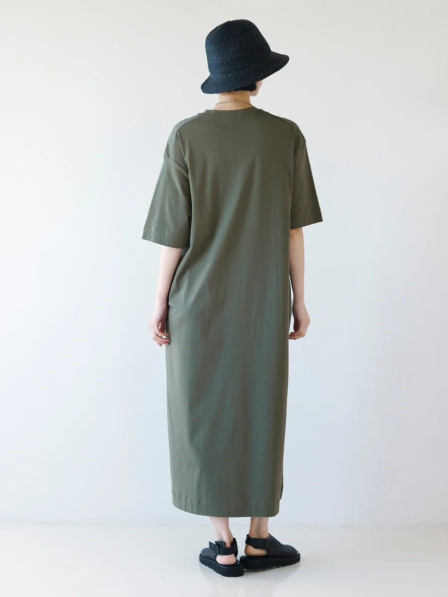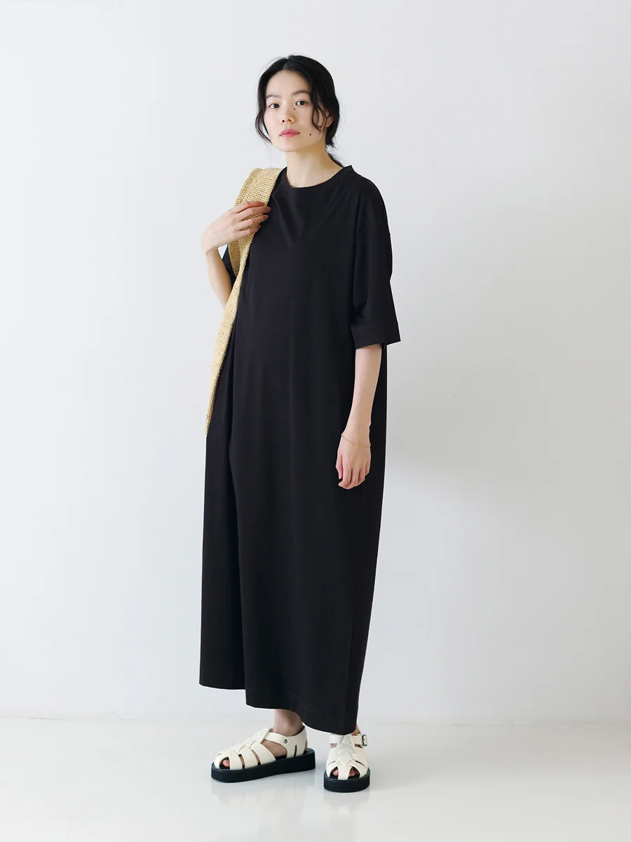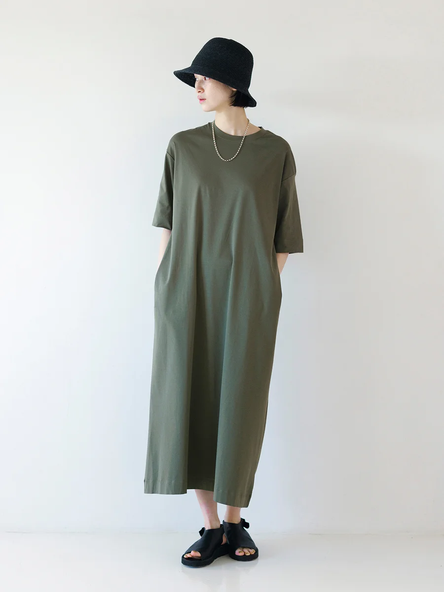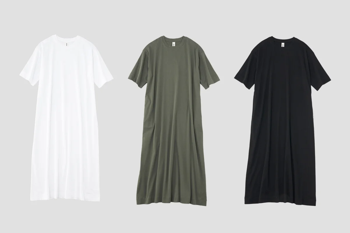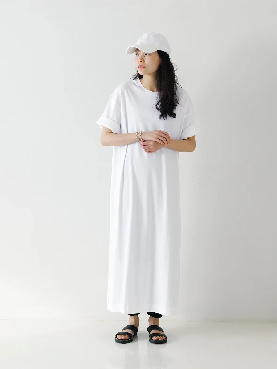 生地のうつくしさや落ち感のおかげで、 カジュアルになりすぎずに 1枚で品よく決まる「Tワンピース」。