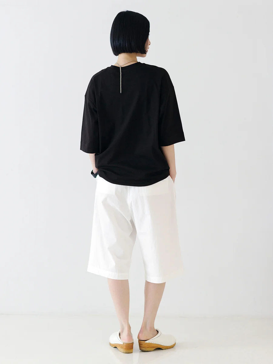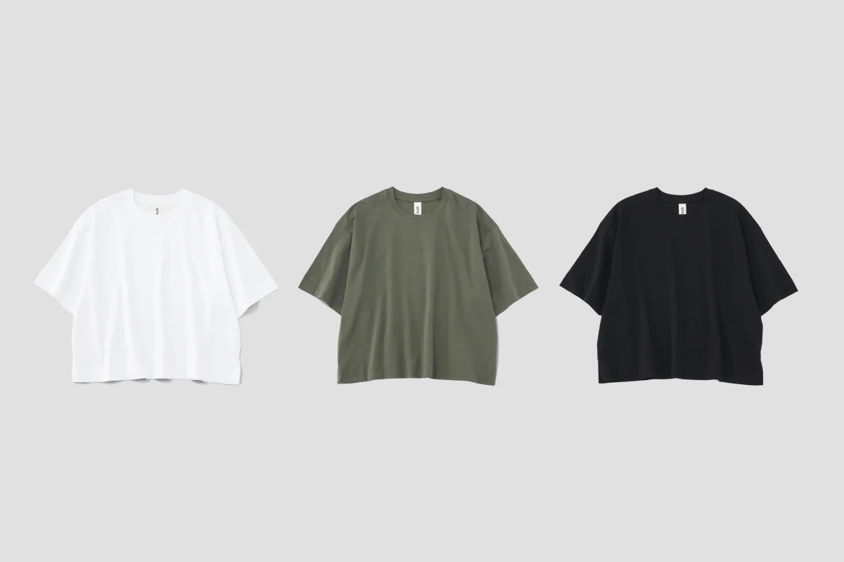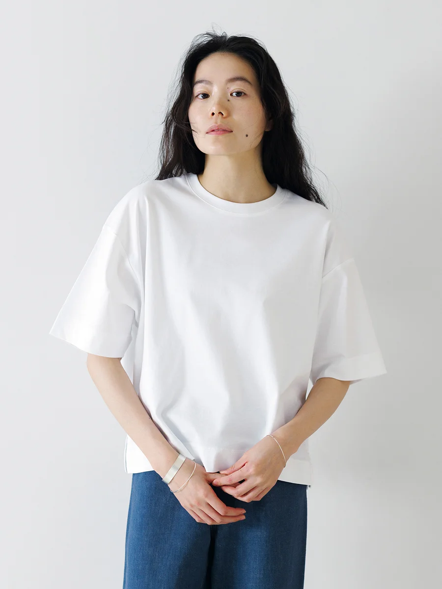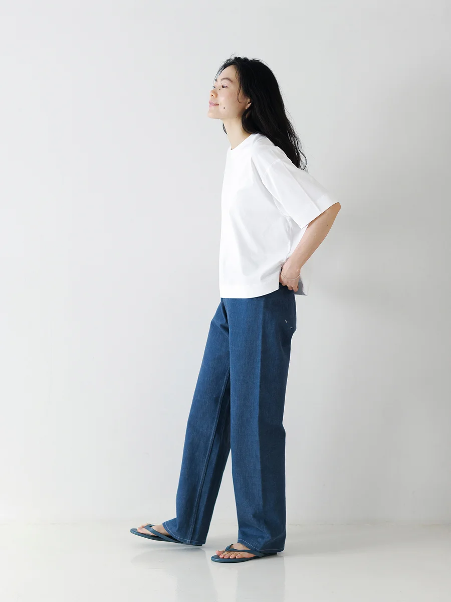 ボディは「ジェンダーレス ワイドT」と同じ。 ベースは定番の形なので、 まずは気軽にトライしていただけたら。 ジャケットと合わせてきれいめにも、カジュアルにも。