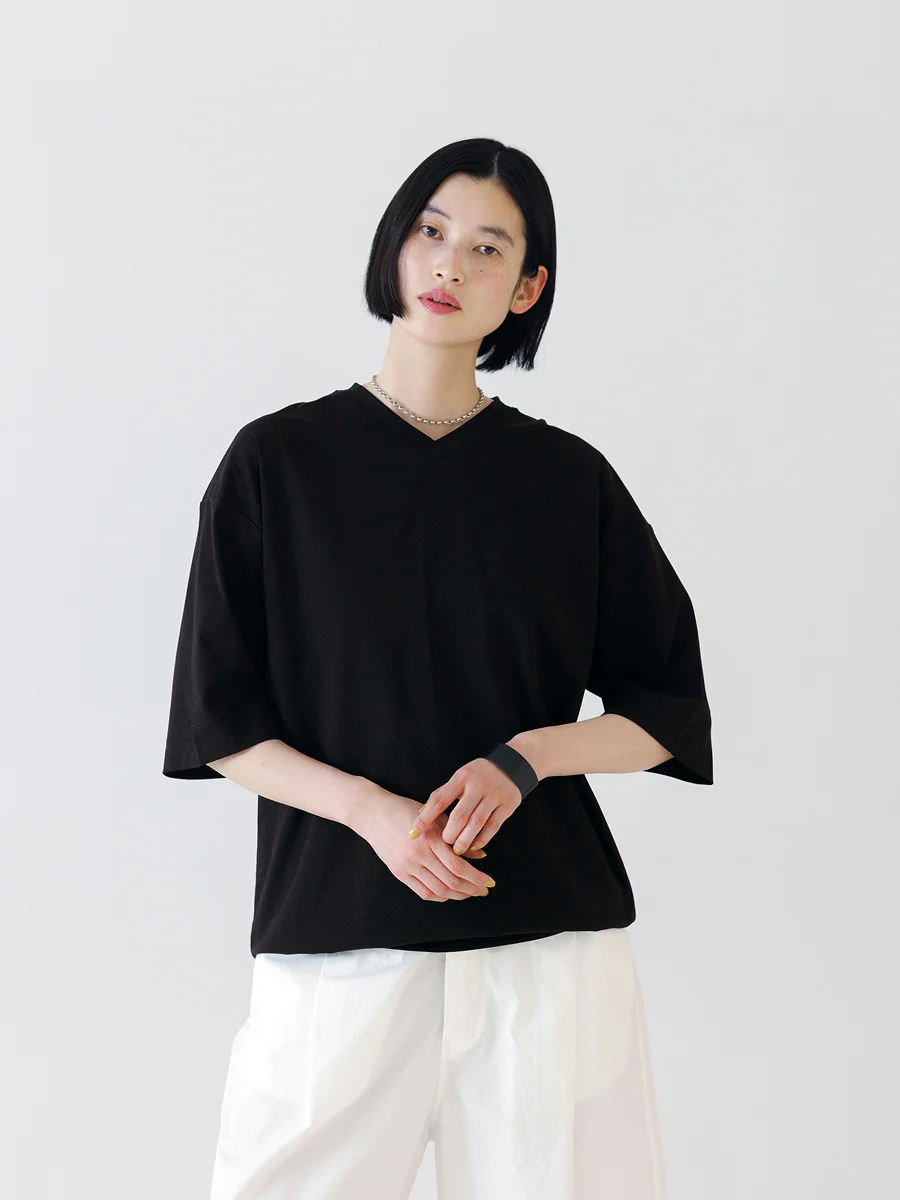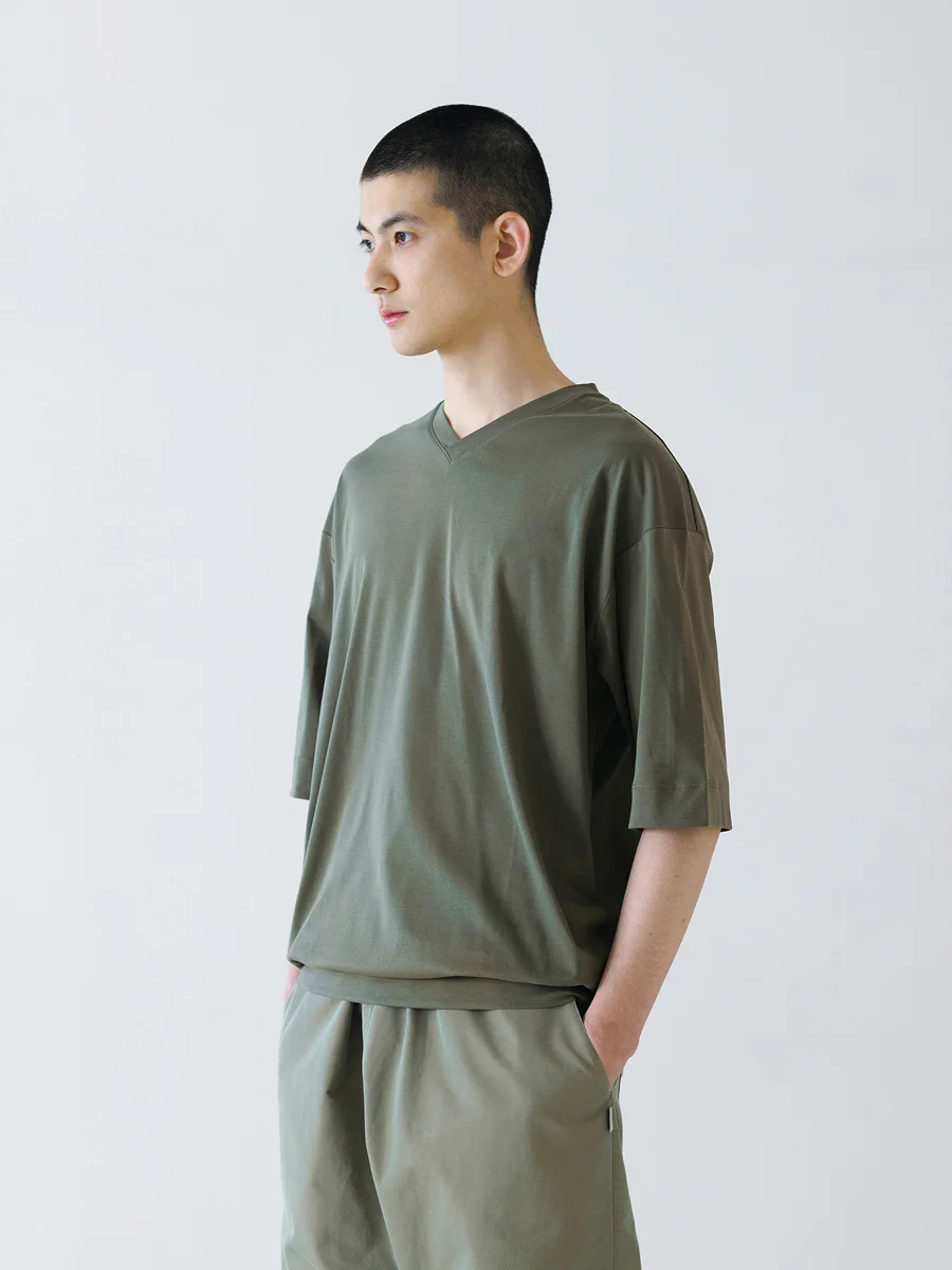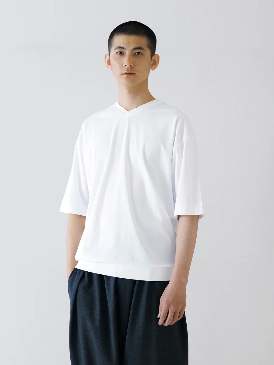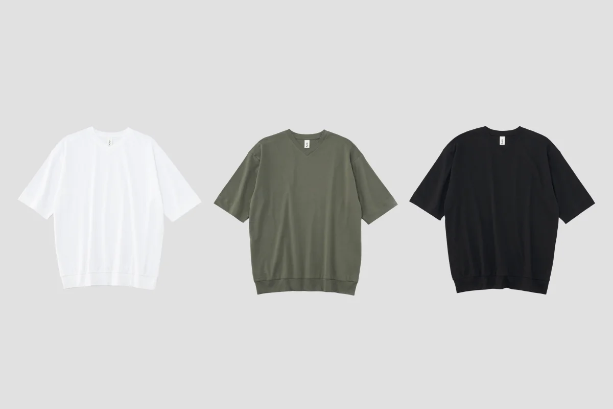 そして、定番の「ジェンダーレス ワイドT」をベースに、 浅めのVネックにアップデートした 「メンズ VネックT」。