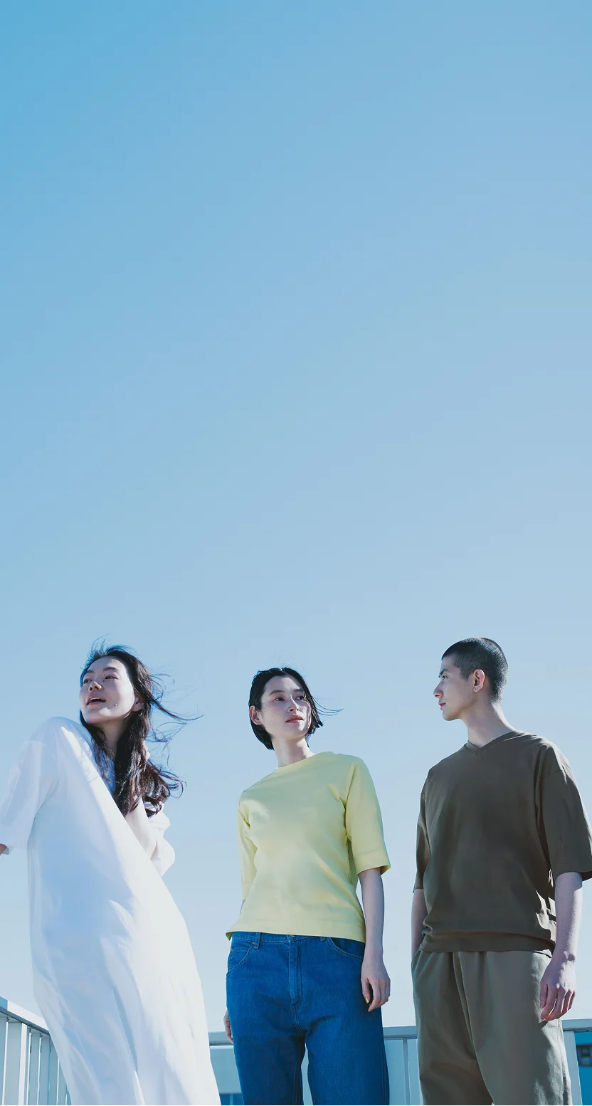 そんなRosyシリーズに、 今の気分で着たい、新しい3型が登場しました。 「レディス Tワンピース」「レディス ワイドT」 そして「メンズ VネックT」。 それぞれのかたちや、おすすめの着方について、 宇和川さんと加藤さんにうかがいました。