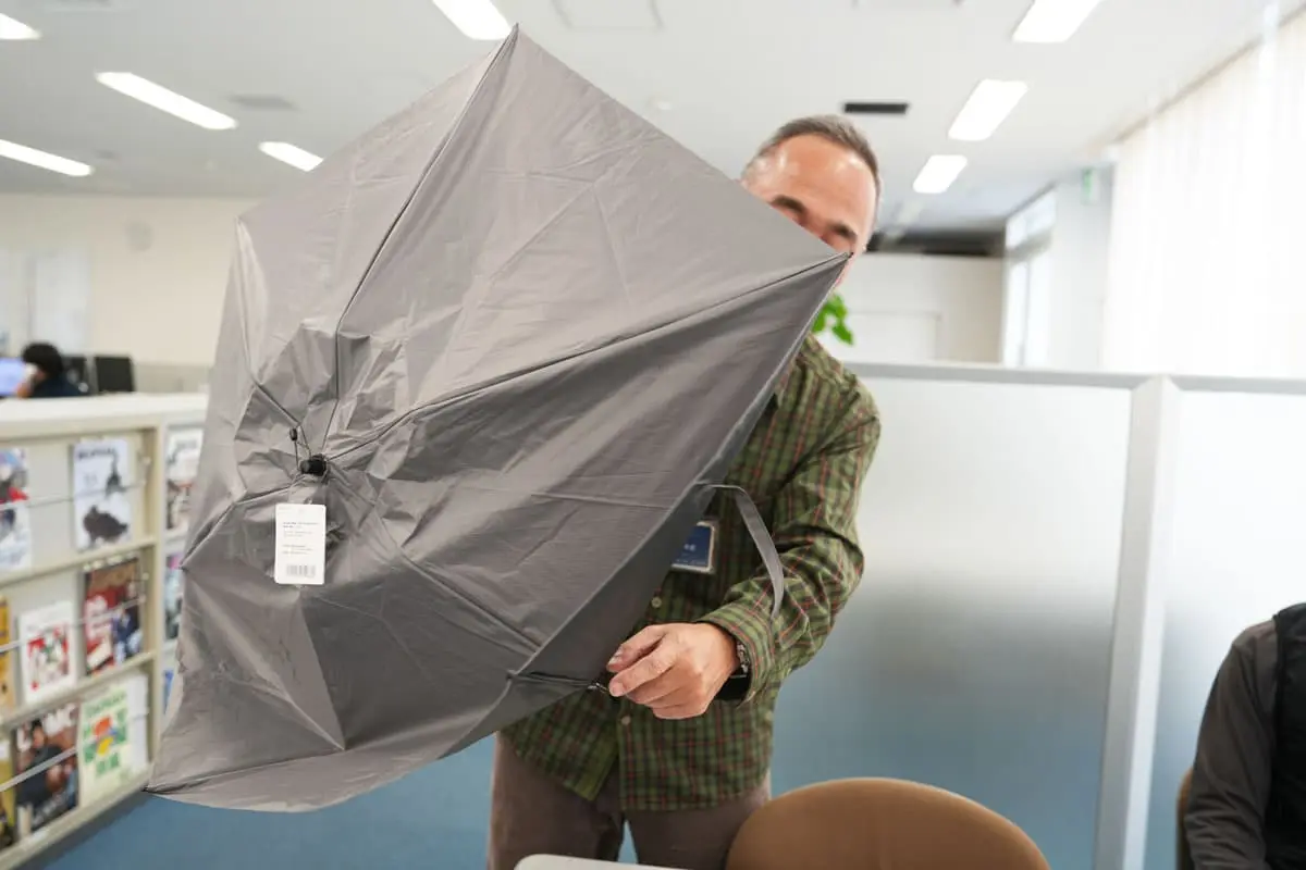 古館 今回の「トラベル 2-Way アンブレラ 50」は 名前のとおり旅行などに適しているので、 そこまで本格的な場面での使用は推奨していませんが、 晴雨兼用傘のアウトドアでの立ち位置の話をすると、 タフな場面でも使われる人が多くなっていますね。