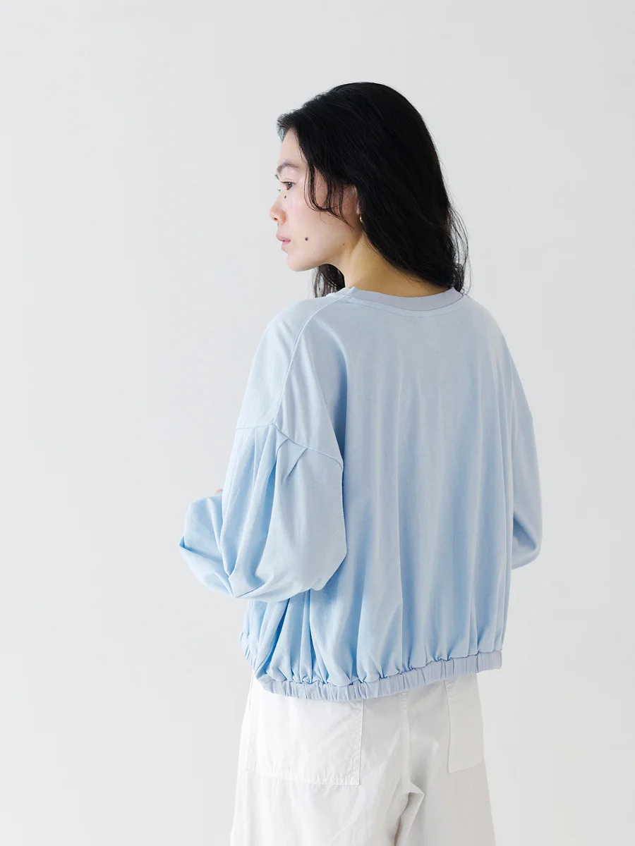 宇和川 袖山にタックを入れて、 袖口にギャザーをたっぷり入れているので、 自然と立体感が出るようになっています。 女性らしさが出るポイントですね。