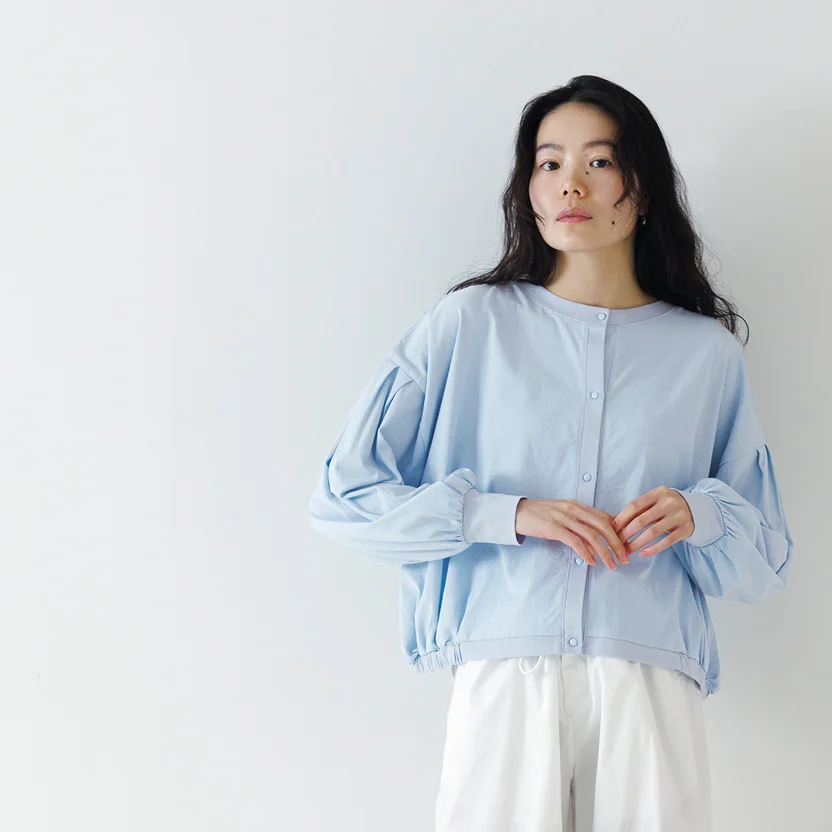 ─ 「サマーパフカーディガン」という名前のとおり、 シルエットもけっこう立体的ですね。 ふわっとしているのは、 やっぱり夏に涼しく着られるように?