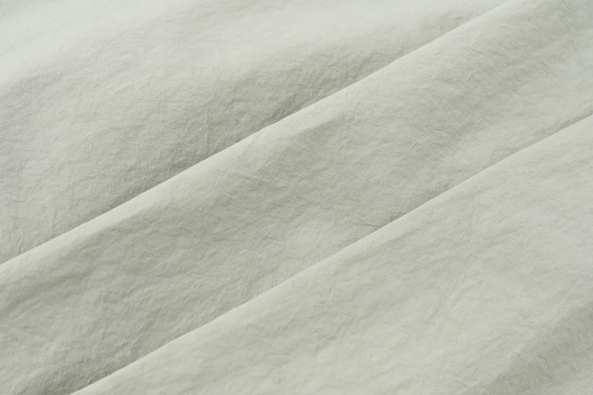 塁 滋賀県で近江晒(おうみさらし)加工を施しています。 灰汁(あく)を使って布をやわらかくして、 日光に晒して白くする工程を繰り返すのですが、 滋賀ではさらに手揉みで洗いをかけるんです。 そうすることで、不均一なシボが生まれるのが特徴です。 その自然なシワ感が、独特の表情につながります。