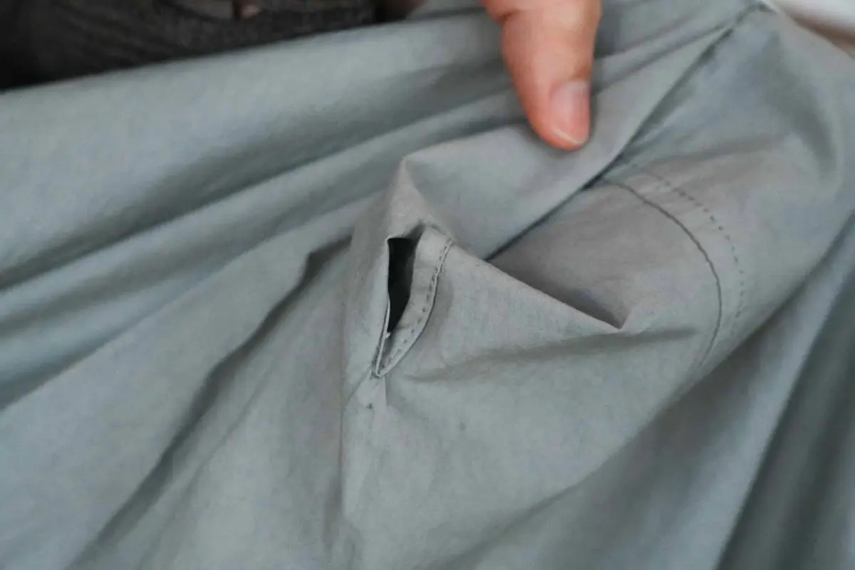 仁美 そうですね。 股上は深いですが、 足さばきはいいように設計しています。 自転車もラクに漕げますよ。 あと、実はお腹まわりの内側に、 小さな穴を開けているんです。 そこに少し遊びが生まれることで、 体格のいい方が履いたときにも 変に突っ張ったシワが出にくくなっています。