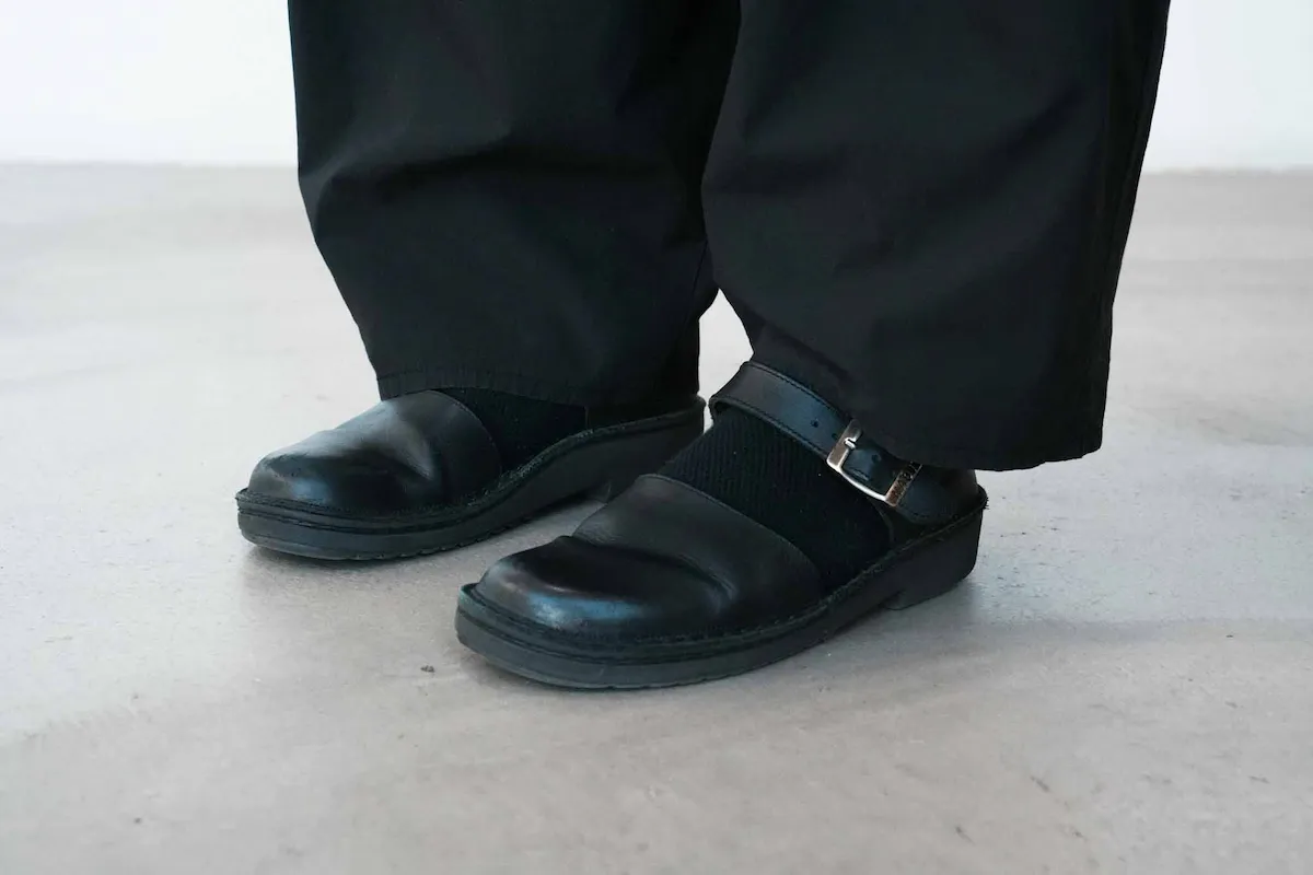 フルレングスなので足元はすっきりまとめて、 サンダルや軽めの革靴で バランスを取るのがおすすめです。