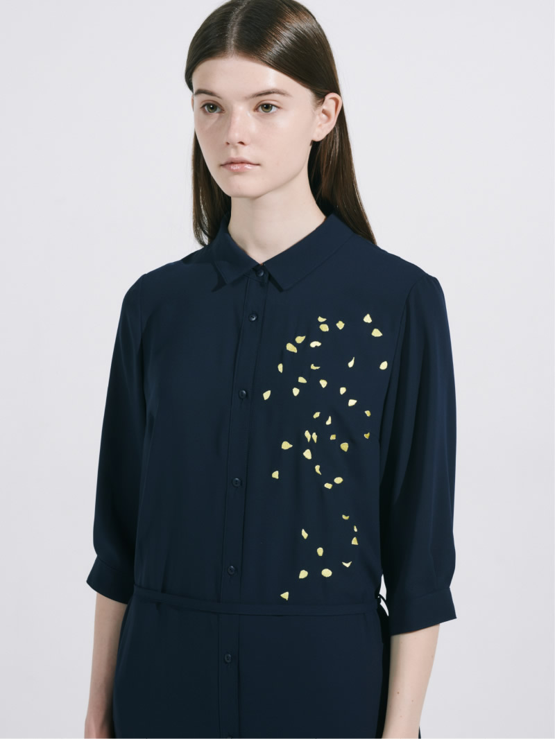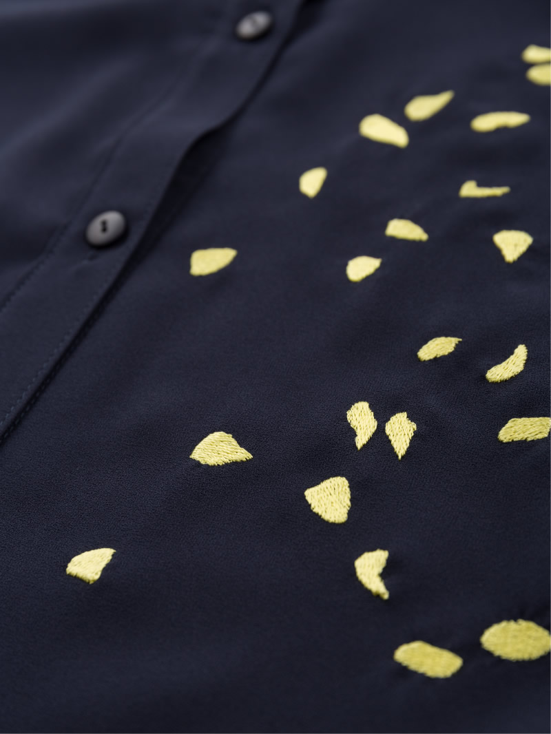 黄色の花びらが刺繍されています。