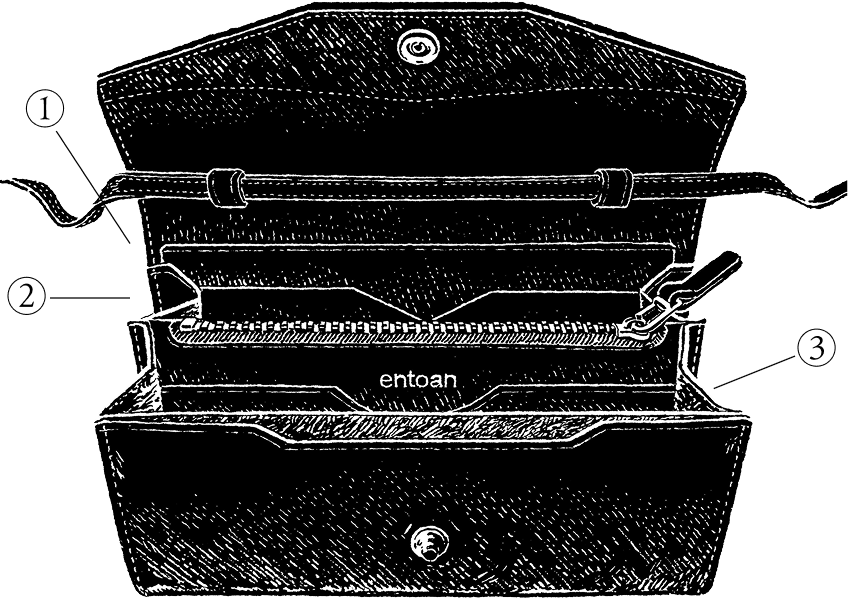 フラップを開けても見えません。②お札を入れる場所、その2。
