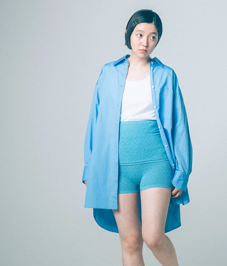 伸縮性抜群のコットン素材「のびのびタオリン」の、 レースのような透かし柄のシリーズ「pochi」。 やわらかな質感で、お腹をなめらかに包みます。 新色は、「サックスブルー」と「ビスケット」。 「サックスブルー」は、シャツやジーンズ、 「ビスケット」は、トレンチコートやチノパンを イメージした、毎日に取り入れやすいカラーです。