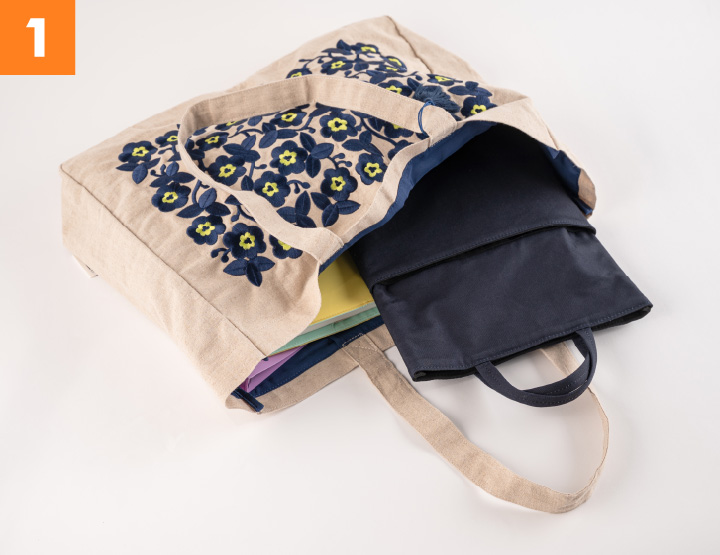 This gusseted tote bag is large enough to hold a laptop or magazine, but light enough that you can bring it with you anytime, anywhere. It’s as portable as a reusable shopping bag—except sturdy enough with its backing layer so you can use it as a full-time bag.