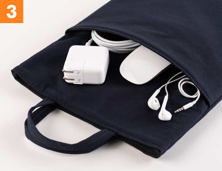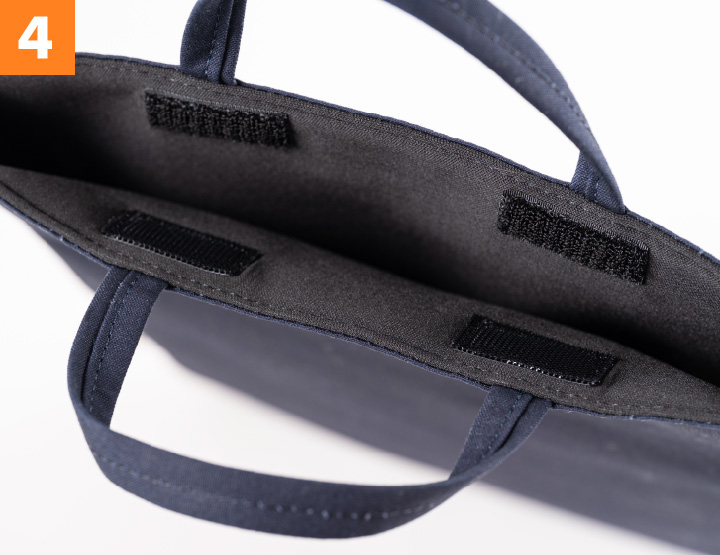 This slim and slight tote bag can fit a 13-inch laptop or A4 size paperwork. You can keep your paperwork and laptop all together and easily carry them around anywhere you go. The fabric gently wraps the contents like a sandwich, hence the name Panini.