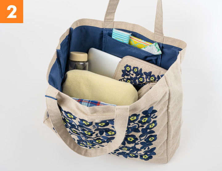 Keeping a Drawer Pouch or Anytime Drawstring Bag inside can help you keep the Anytime Tote’s ample storage space even easier to access.