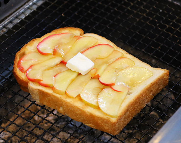 バタートーストにくだもののスライスをのせて、