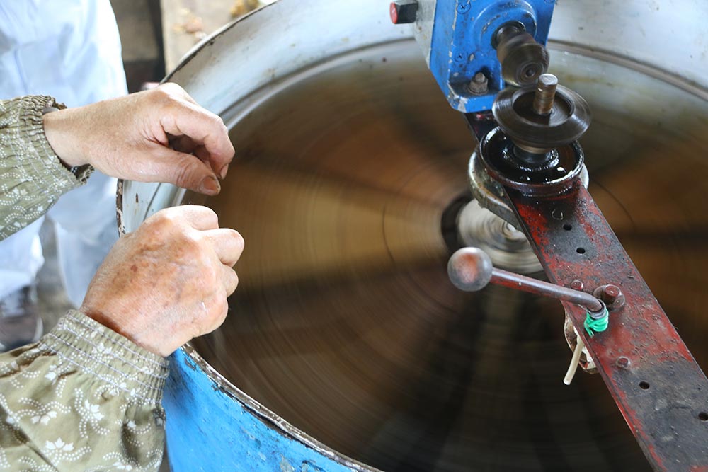 巣房ひとつひとつに貯蔵し、自分たちでフタをします。