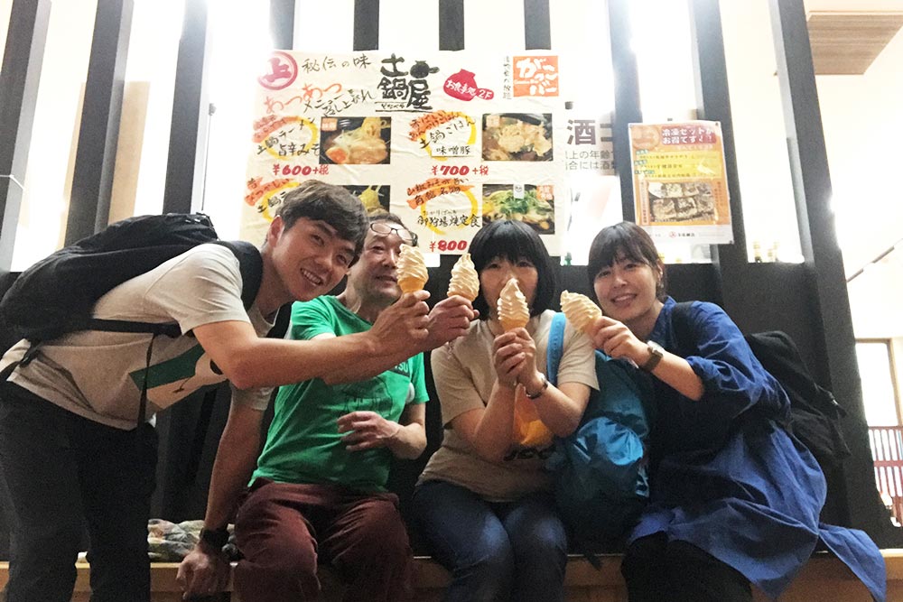 ▲帰りに私たちは角館名物の「しょうゆソフト」を