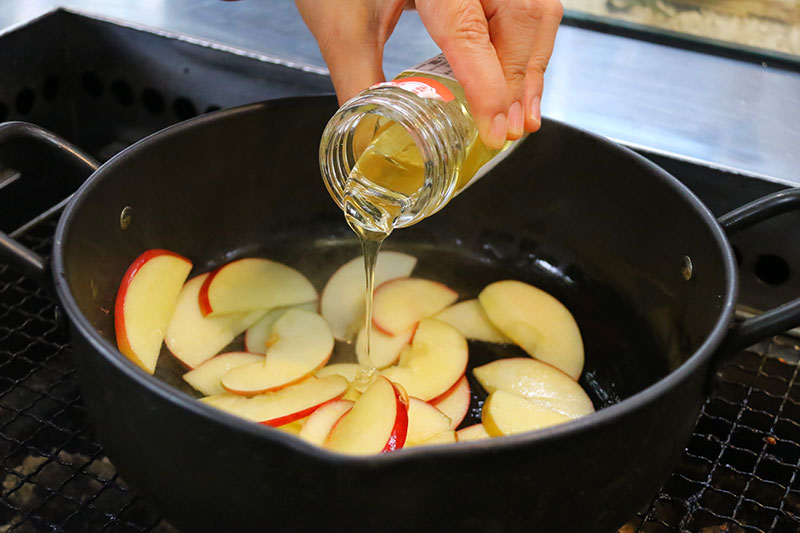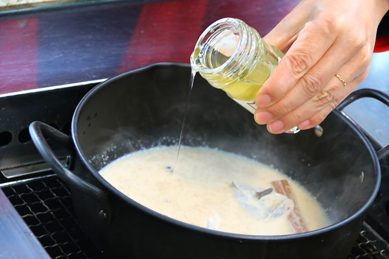 鍋を弱火で、沸騰しないように少しずつあたためて、