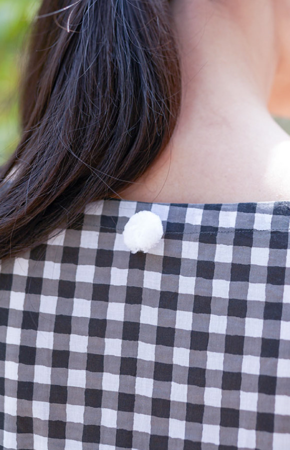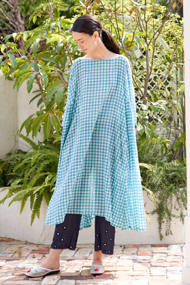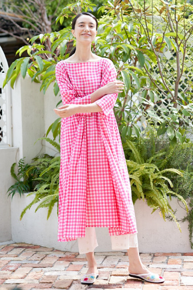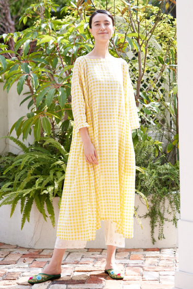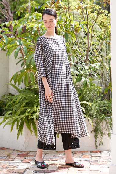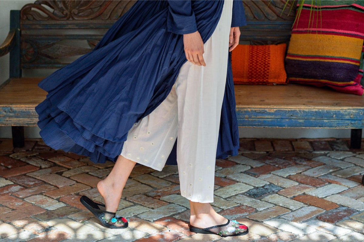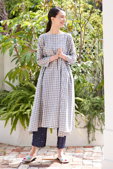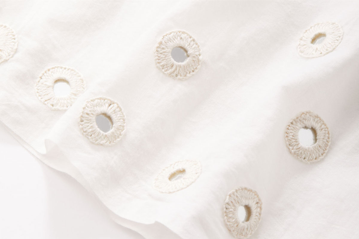 裾には、ちいさな鏡が手刺繍で縫いとめられていて、