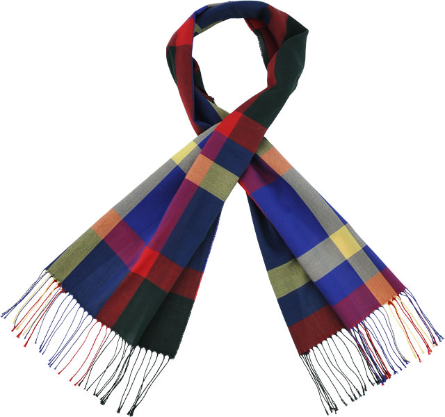 グリーンを基調色に、レッド、ブルー、イエローの4色を 異なる大きさのブロックで 大胆に組み合わせたチェック柄です。 クラシカルでありながら、鮮やかな雰囲気が漂うデザイン。 巻き方を変えることで、 異なる表情をお楽しみいただけます。