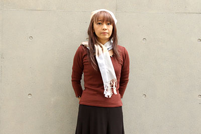 今日の服に合ったくびまきを選んでみようかしら。」(上野さん)