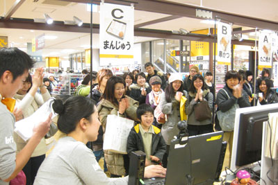 ▲当日大雪だった旭川ロフトの「お国じまん3択」のミニゲームは