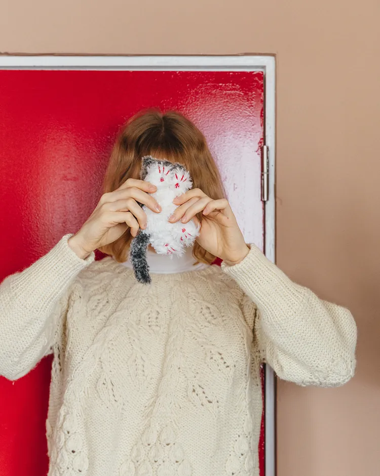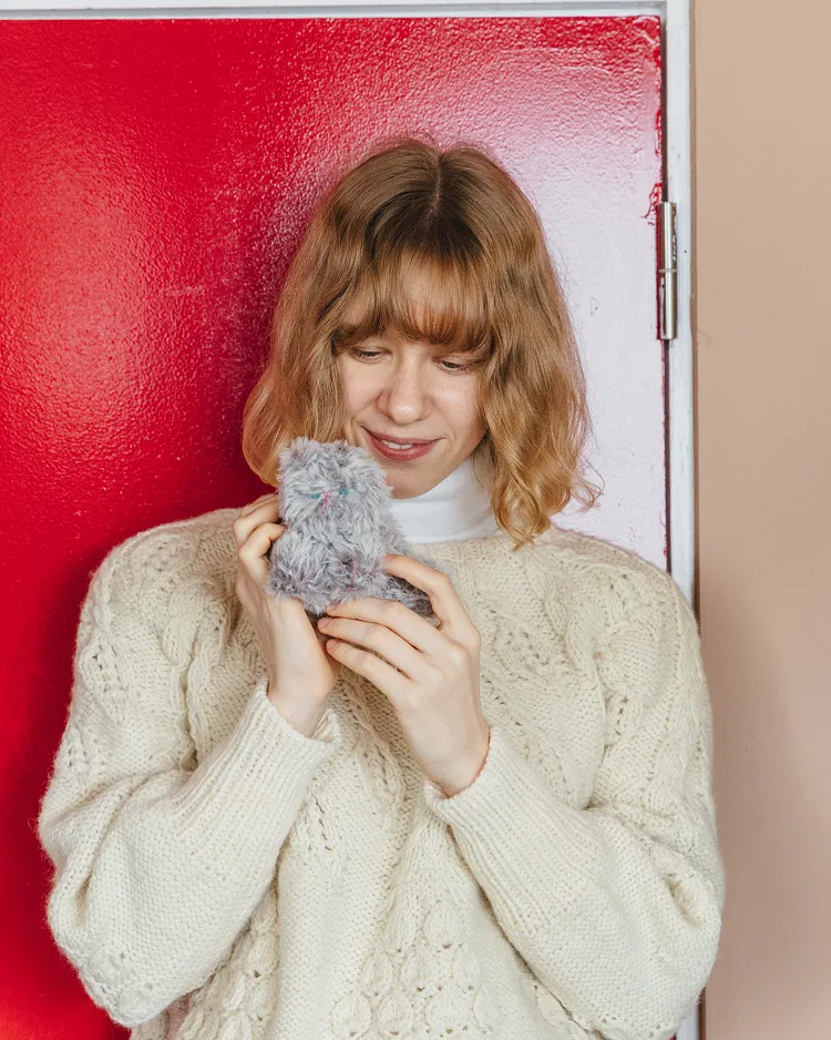 ふわふわの猫の編みぐるみ。