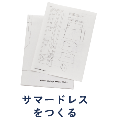 三國万里子さんがイギリスでみつけたヴィンテージワンピースをヒントに、涼しげなサマードレスのパターンと編み針柄のオリジナル生地をつくりました。すぐ着たいかたには、仕立てずみのサマードレスもありますよ。あわせて、三國さんがはじめて発表する“サマーニット”のカーディガンも登場です。軽やかで着心地のいいお洋服は、夏の定番になりそうです。