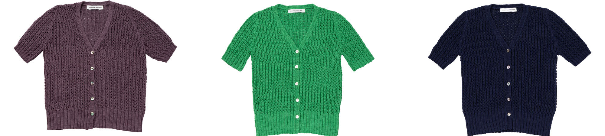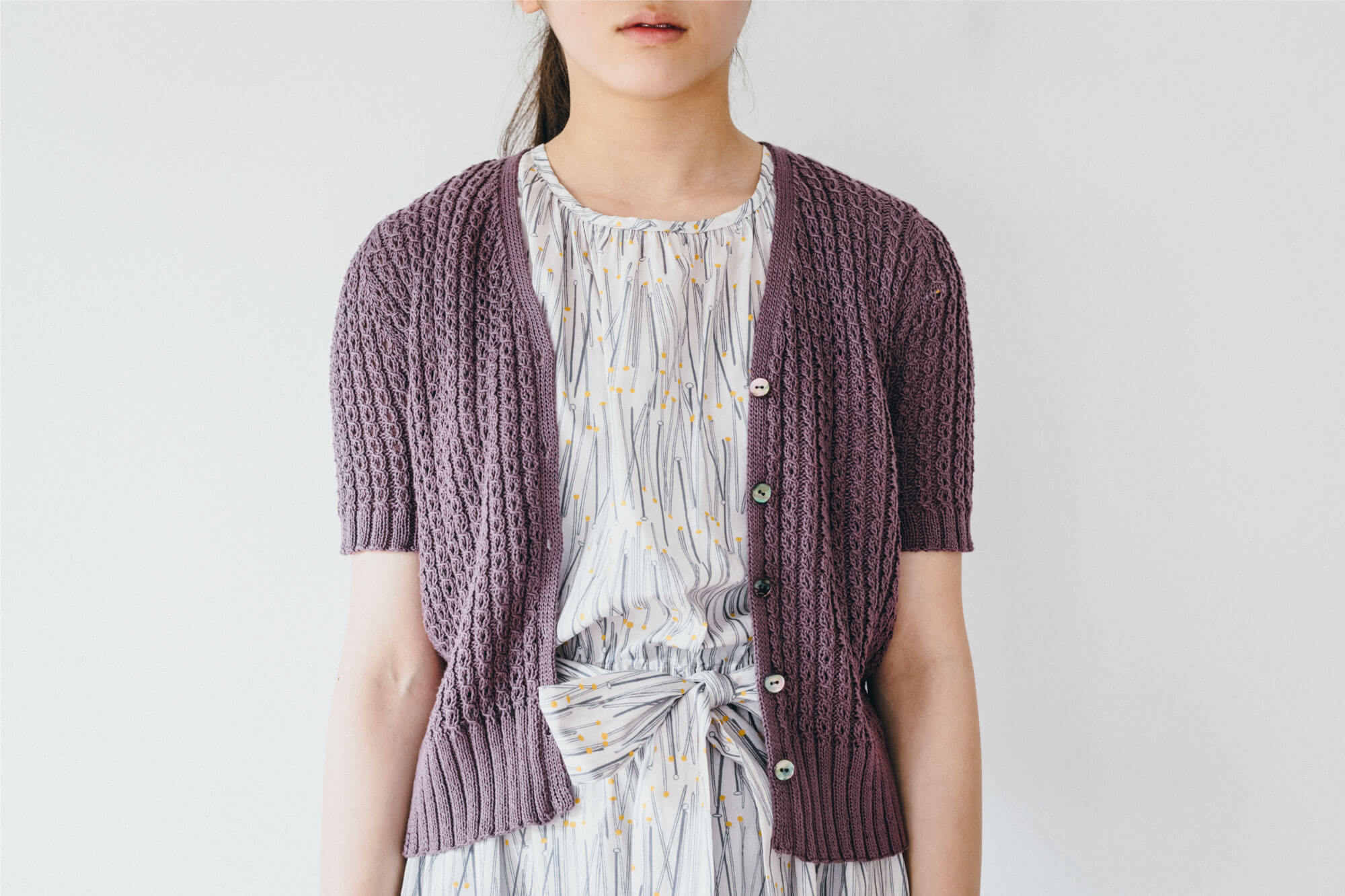 サマードレスの軽やかさにマッチする、細かいケーブル編みがポイントのカーディガン。