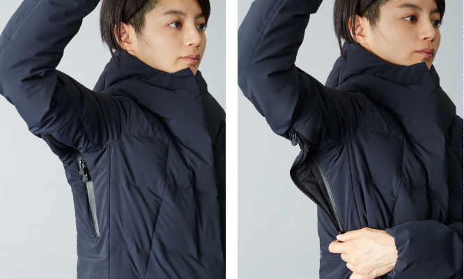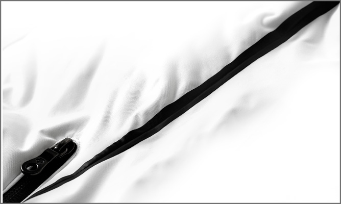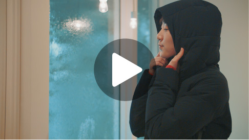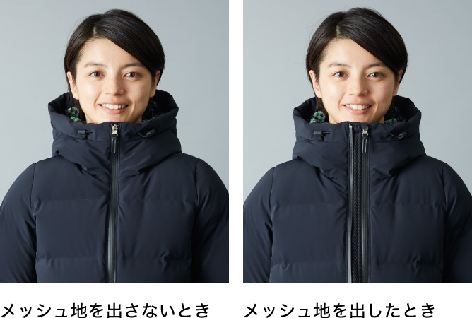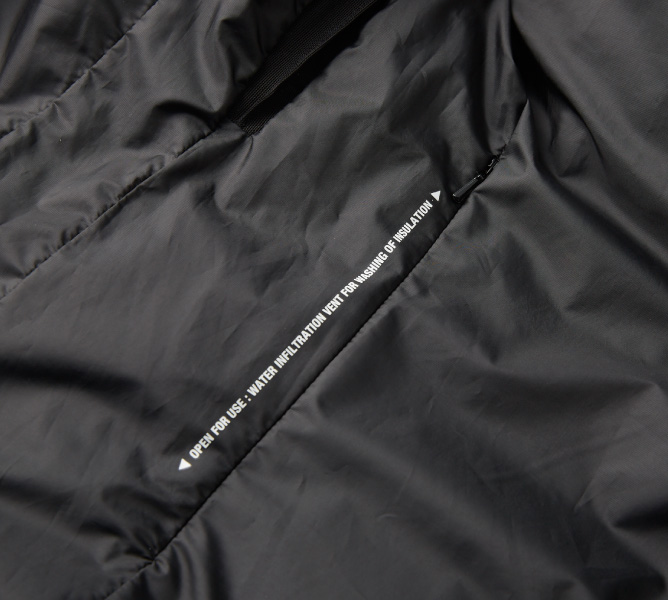 水沢ダウンは、3つの防水加工で、水の浸入をふせぎます。