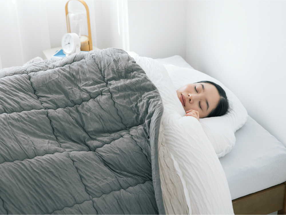 「冬のくまもとろけるふとん」が身体にふれるよう、