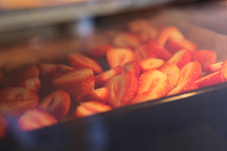 いちごの切り口を上にして天板に並べ、オーブンドライする。