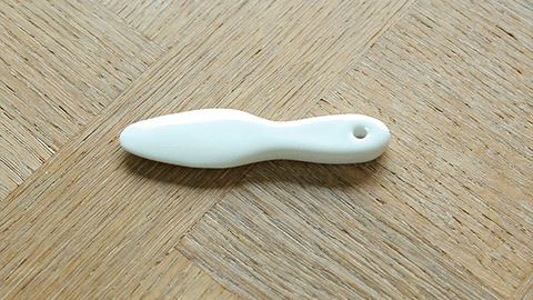 フタの取っ手が、くまの顔になっているバターポットです。バターポットに使うぶんだけバターを入れ、おなじ波佐見焼のぽってりしたバターナイフをそえると、いつもの食卓が、ちょっとたのしくなります。ジャムポット、ジャムスプーンといっしょにお使いいただくのも、おすすめです。バターポットは、ジュエリーそのほか、小物入れとしてお使いいただいても、べんりです。