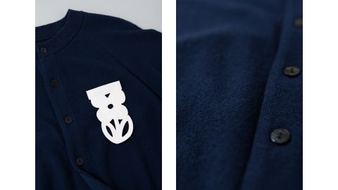 縫い目のないホールガーメント製法でとにかく着心地のいいカーディガン。身ごろと袖を同時に編むことで縫い目をなくし、美しいシルエットを実現。「ぜひ、実際に袖を通してほしいです。というのも、やわらかく、たっぷり空気を含んだウールをホールガーメントと呼ばれる特殊製法で編んでいるから他にはない、素晴らしい着心地なんです。全体はシンプルですが貝のボタンを、少し表情のあるものに。花のモチーフのワッペンがつきます」(デザイナー渡邉良重)