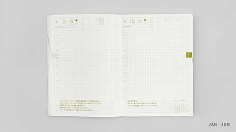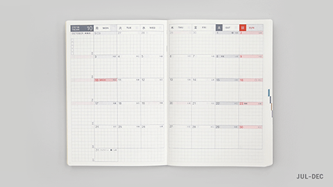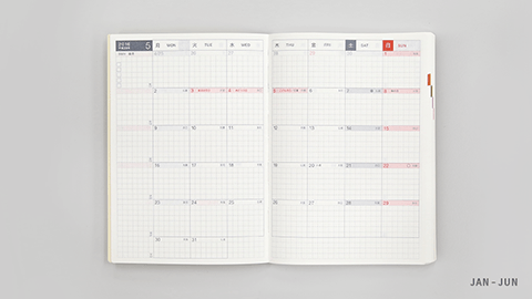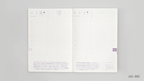 半年タイプの手帳で、たくさん貼っても分厚くなりにくく、より持ち運びしやすいのが特長です。2015年12月の予定が書ける「2日で1ページ」をのぞき、ページの内容や機能はオリジナルと同じです。
