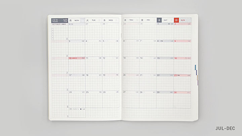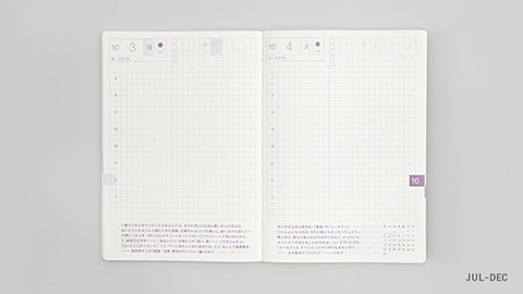 ページの内容や機能は通常版の手帳本体オリジナルと同じです。1日1ページタイプで半年ぶんの月間スケジュールやおまけページも、もれなく収録されています。