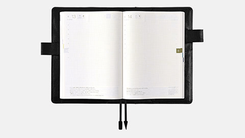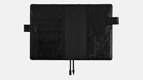上質な黒革カバーとして毎年人気の「TSブラック」に新しいラインナップが加わりました。グラフィックデザイナーの佐藤卓さんが今回選んだ革は、光沢のあるゴートスキン(山羊革)。牛革やシープスキン(羊革)に比べて、丈夫でしなやか、また、シボやしわが多く表情も豊かです。摩擦にも強いことから、昔から本を装丁するための高級素材としても使われてきました。一つひとつしわの入り方が異なる革本来の魅力を、たっぷり味わえるカバーです。(「TS」は、佐藤卓さんのイニシャルです)「TSブラック 2016」もご用意しています。