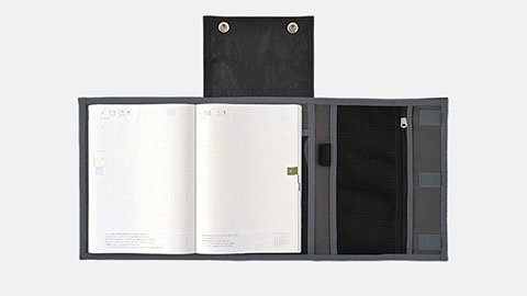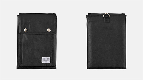 大きなポケットが特徴的な3つ折りタイプのカバーです。レザーのように見える独特な質感は、PORTERオリジナルの素材によるもの。ポケットにはiPad miniなどのタブレット端末もすっぽりと収まり、必要なときにすぐ取り出せる構造です。内側のジッパーつきポケットには、ペンやコード類などをしまっておけます。カバーの収納力がとても高く、手帳の入ったカバンを持ち歩くように使えます。