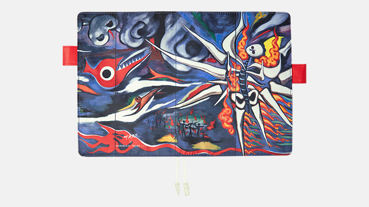 岡本太郎の作品『明日の神話』をおおきく全体に配置したプリントカバーです。『明日の神話』は原爆の炸裂する瞬間を描いた、岡本太郎最大の壁画作品。岡本太郎のパートナーである岡本敏子さんはこの絵について、こんなふうに話していました。「これは原爆という、まったくまがまがしい力が炸裂した瞬間に、人間の誇りが負けずにバーッと燃え上がったんだぞ、という絵なんです。そんなの、岡本太郎じゃなければ描けない絵なの。いいぞぉー!」どんなマイナスをも乗り越えてゆくエネルギーを巨大なスケールで描きだした原色の絵は、見る人の心に圧倒的なエネルギーを呼び起こします。手帳の内側の色は、燃えるような赤。来る一年、いのちのエネルギーをいっそう燃やして生きていきたい人に。カズンでは、より大きなサイズで作品の凄みを感じていただけます。