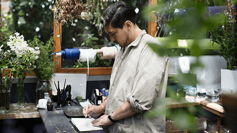 - 工場の人たちが1枚1枚ミシンで