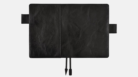 2009年の登場以来上質な黒革カバーとして人気の高い「TSブラック」に新しいラインナップが加わりました。グラフィックデザイナーの佐藤卓さんが選んだのはツヤツヤとした光沢のあるゴートスキン(山羊革)。牛革やシープスキン(羊革)に比べてシボやしわが多く表情も豊かで、しなやかなのが特長です。丈夫で摩擦にも強いことから、昔から本を装丁するための高級素材としても使われてきました。一つひとつしわの入り方が異なる革本来の魅力を、たっぷり味わえるカバーです。(「TS」は、佐藤卓さんのイニシャルです)