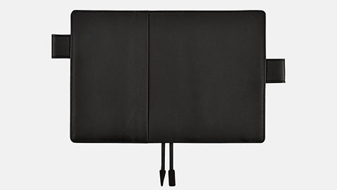 グラフィックデザイナーの佐藤卓さんがプロデュースした、スタンダードな黒革カバーです。毎年好評で、2016年版で8年目をむかえますが、いつの時代も流行に左右されることのない「定番」的な存在という意味を込めてあらためて「ベーシック」と名づけました。                                      きめ細かでマットな黒革で、使いはじめからやわらかく、手になじみます。存在感がありながらも主張をしすぎず、どんなシーンにもマッチするカバーです。(「TS」は、佐藤卓さんのイニシャルです)