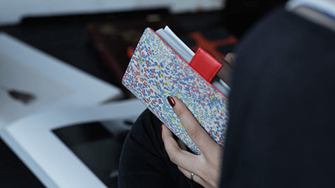 しおり(2本)/バタフライストッパー/カード用ポケット(4つ)/スマイルポケット(1つ)/大きなポケット(2つ)/チケットポケット(1つ)/外側ポケット(1つ)