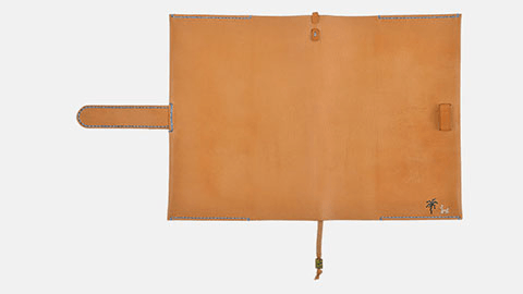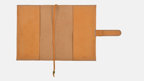 使うほどに手になじんでゆく、なめらかな感触の上質な革を使ったアンリークイールのカバー。一つひとつイタリアの工房で、ハンドメイドでつくられています。