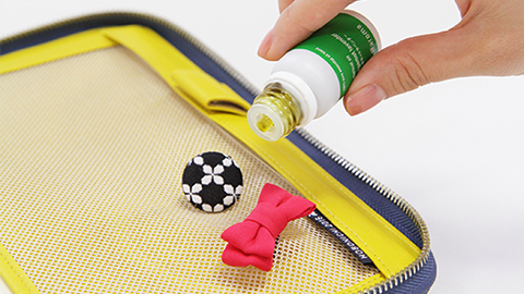 <使用方法>お好みのエッセンシャルオイルを1~2滴、直接アロマピンズの生地部分に垂らしてお使いください。エッセンシャルオイルは別売りです。