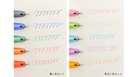 使いやすいスタンダード色の「濃い色セット」と、きれいな色でイラストなどを描くのにもちょうどいい「明るい色セット」の2種類からお選びいただけます。